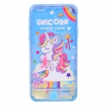 Joc de buzunar cu apă, cu motiv unicorn în formă de telefon, care aduce distracție atât pentru copii, cât și pentru adulți. Prin apăsarea butoanelor pui apa în mișcare și încerci să pui inelele colorate pe țăruși. Jocul dezvoltă concentrarea, răbdarea și motricitatea fină. Datorită dimensiunilor compacte, este ideal pentru călătorii, la școală și în pauze. Culoarea este trimisă aleator.