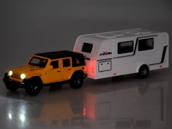 Mașină off-road cu rulotă cu lumini și sunete 1:32 – galbenă