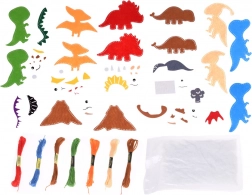 Setul creativ Lumea dinozaurilor este o modalitate excelentă de a-ți explora latura creativă și de a-ți dezvolta abilitățile manuale. Cu acest set poți crea propriii dinozauri din fetru, o activitate distractivă care îmbunătățește în același timp concentrarea și coordonarea mână-ochi. Această activitate este o alternativă ideală la timpul petrecut în fața ecranului, iar jucăriile realizate manual vor deveni o frumoasă decorațiune pentru camera copilului sau un cadou grozav. Acest set este perfect pentru orice copil care iubește activitățile creative. Setul conține: