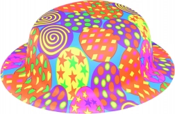 Această pălărie veselă cu modele colorate este alegerea perfectă pentru orice distracție. Este realizată din plastic flexibil, astfel încât se așază bine și se întreține ușor. Datorită culorilor și motivelor expresive, atrage atenția și oferă evenimentului tău un stil jucăuș.