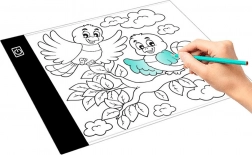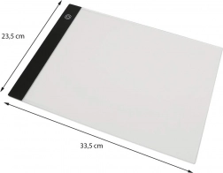 Cum funcționează: Așezați desenul pe care doriți să îl copiați pe planșă și puneți deasupra o coală curată. Apoi porniți iluminarea potrivită și puteți începe să desenați.