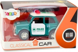 Mașina este îmbogățită cu efecte luminoase și sonore – lumini clipitoare și sirene caracteristice de poliție atrag atenția și fac jocul și mai palpitant. Fabricat din metal de înaltă calitate, vehiculul este nu doar estetic, dar și foarte rezistent, garantând o durată lungă de viață. Construcția este solidă, oferind rezistență la daune, ideală pentru joaca intensă acasă sau afară.