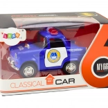 Mașina de poliție clasică într-o culoare albastră elegantă este o replică perfectă a mașinilor de poliție reale, care atrage atât copii, cât și adulți. Dispune de tracțiune prin frecare, care odată trasă înapoi pleacă rapid înainte, permițând simularea unor curse de poliție realiste sau patrule.