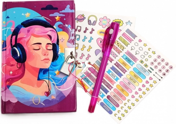 Jurnal secret pentru copii cu lacăt HAPPY MAGIC BOOK cu autocolante și accesorii