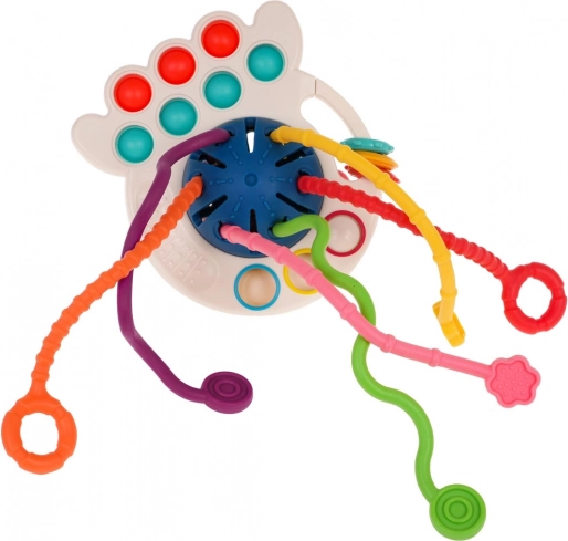 Jucărie senzorială 4 în 1, caracatiță pentru copii de la 18 luni. Jucăria este realizată din materiale sigure pentru copii și nu are margini ascuțite. Culorile vii încurajează copilul să se joace. Jucăria poate fi folosită ca inel de dentiție; bebelușul o poate trage, împinge, mișca diverse elemente și exersa coordonarea mână-ochi. Jucăria poate fi atașată la pătuț, cărucior sau scaun auto în timpul călătoriei cu mașina. . Funcțiile jucăriei: . - potrivită pentru copii de la 18 luni, .- fabricată din materiale sigure, .- culorile strălucitoare atrag atenția celor mici, .- multe posibilități de joc: .* șnururi din cauciuc pentru tras și ros, .* pop it - apăsarea și strivirea bulelor, .* mișcă butonul prin slalomuri, .* despărțitor de mărgele, .- posibilitatea de a fixa jucăria în diverse locuri: pătuț, cărucior etc. .- ușor de curățat. . |