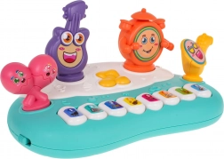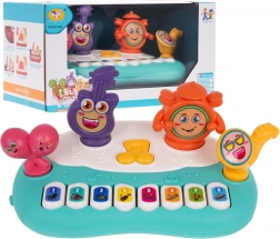 Fiecare clapă redă un alt instrument, ceea ce sprijină diferențierea sunetelor și primele experimente muzicale.