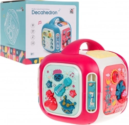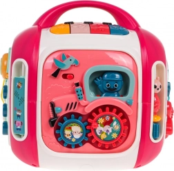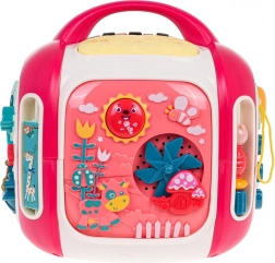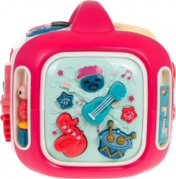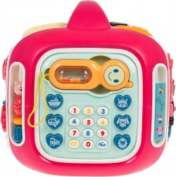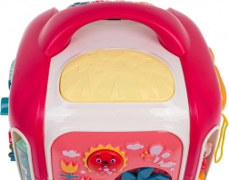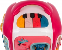 Fiecare latură a cutiei oferă un mod diferit de explorare: panou muzical cu chitară, saxofon și tobiță cu efecte luminoase, „telefon” detașabil cu cifrele 0–9 și butoane cu animăluțe și mijloace de transport, latură cu tractor și roți dințate pentru dezvoltarea coordonării și latură cu soare și morișcă pentru redarea melodiilor. În partea superioară se află un pian sensibil cu 3 moduri (gamă, redare aleatorie, mod muzical) și mixer de sunet.