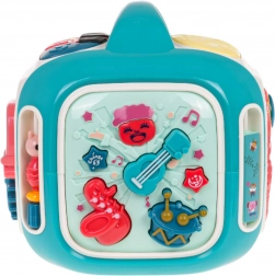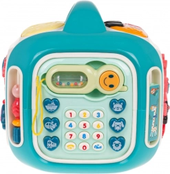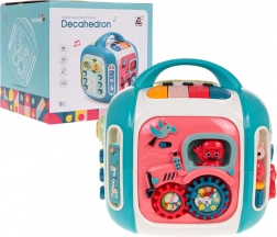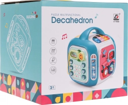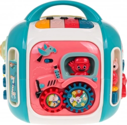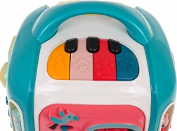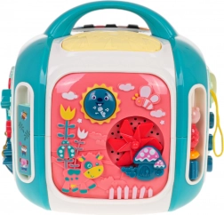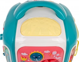 Cutie interactivă colorată, cu bogate efecte de lumini și sunete, care îi distrează pe copii de la 3 ani timp de multe ore. Fiecare latură oferă activități diferite – mini pian, instrumente muzicale, telefon cu numere și animăluțe, roți dințate rotative și morișcă și soare. O mâner practică ușurează transportul, iar plasticul de calitate în culori vii susține dezvoltarea simțurilor și a motricității fine.