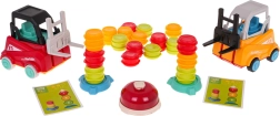 Stivuitor pentru copii de la 3 ani, fabricat din plastic de calitate în culori vii. Jocul dezvoltă gândirea logică și coordonarea mână-ochi.