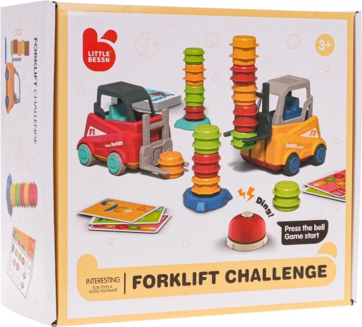 Stivuitorul este un joc de îndemânare amuzant și provocator pentru copiii de peste 3 ani. Setul include două stivuitoare, butoaie pentru stivuire, suporturi, cărți și un clopoțel. Scopul este să construiești rapid și precis un turn din butoaie conform cardului extras. Jocul se joacă contra timp și câștigă jucătorul care reușește primul să mute toate butoaiele de pe stivuitor pe suport.