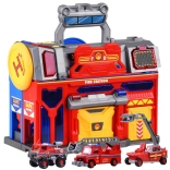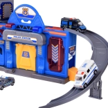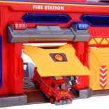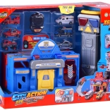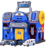 Mare Jucărie Educativă care conectează o stație de poliție și de pompieri, oferind ore de distracție creativă. Include lift, rampe și alarme pentru scenarii realiste.