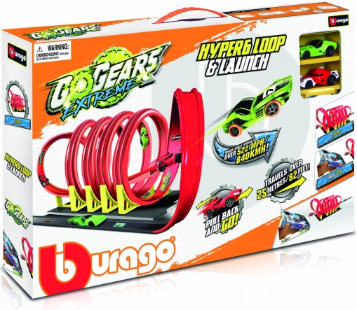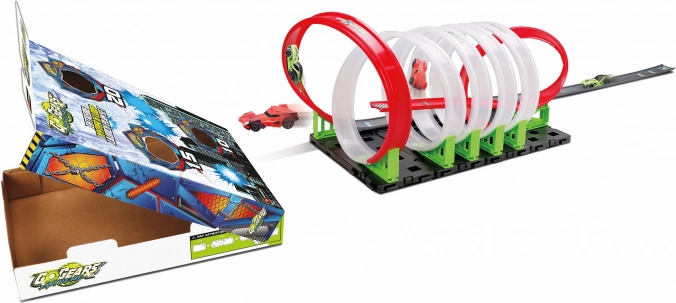 Trăiește adrenalina cursei cu pista auto Bburago GoGears Extreme! Sistemul cu 6 loop-uri, rampă de salt și 2 mașinuțe super-rapide oferă acțiune care îi va încânta pe micii și marii piloți. La o singură armare mașinuța parcurge până la 25 m, iar distracția este completată de o țintă din hârtie cu zone punctate.