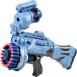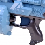 Blasterul mare de jucărie cu 40 de gloanțe din spumă este ideal pentru iubitorii de jocuri de acțiune și tir. Acest blaster este complet realizat din plastic și gloanțele sunt terminate cu capete din cauciuc. Mecanismul permite reîncărcare automată după fiecare foc, prelungind distracția. Construcția sa permite tragerea la o distanță de până la 12 metri și datorită software-ului pentru schimbare de dispozitiv, se manevrează ușor.