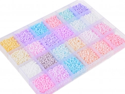 Include 24 de culori diferite de mărgele pastelate: roz, mov, albastru, bej, verde, alb și galben. Sunt depozitate într-un ambalaj transparent și alungit, practic divizat în compartimente. Astfel se evită amestecarea mărgelelor și se facilitează organizarea lor.