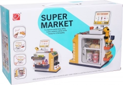 Acest Set de supermarket este jucăria perfectă pentru toți micii entuziaști ai cumpărăturilor. Setul conține tot ce v-ați aștepta să găsiți într-un supermarket adevărat: o masă cu casă de marcat, scanner manual, card de plată, bancnote și monede de hârtie. Pentru jocurile de rol comerciale, veți găsi în pachet imitații de cafea, sucuri, iaurturi, lapte, sushi și dulciuri.
