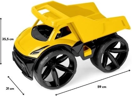 MAXIMUS este o basculantă mare, într-o nuanță suculentă de roșu, care se remarcă prin: design modern, construcție solidă și ușoară, linii contemporane ale caroseriei cu roți mari mate și detalii frumoase. În plus, are o pompă mobilă cu deschidere și un mâner confortabil, care permit jocuri variate și realiste și poate fi folosită pentru transportul nisipului sau al altor jucării. Vehiculul are o lungime de 59 cm.