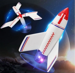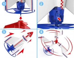 Această rachetă ușoară și rezistentă combină un cadru din plastic cu spumă moale pentru o utilizare mai sigură. La coborâre, aripile se deschid automat și funcționează ca o parașută, asigurând o aterizare stabilă și lină. Lansarea este ușoară – pune racheta pe platforma de lansare și pornește-o cu butonul sau cu telecomanda.