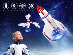 Descoperă distracția cu racheta zburătoare, care se înalță până la aproximativ 30 de metri și apoi aterizează automat datorită aripilor rabatabile. Pachetul include platformă de lansare, telecomandă, acumulator integrat și cablu USB pentru încărcare – ideală pentru aventurile în aer liber ale micilor astronauți.