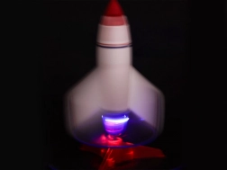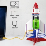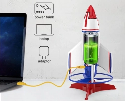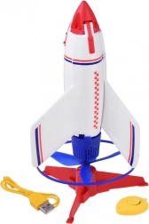 - Rachetă cu acumulator integrat, platformă de lansare, telecomandă, baterie CR1220 pentru telecomandă, cablu USB pentru încărcare, autocolante