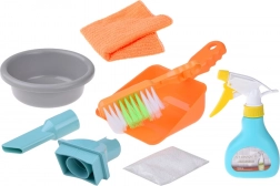 Măturică, făraș, pulverizator, lavetă, bol și un săculeț cu biluțe – tot ce are nevoie micul ajutor pentru un joc variat de „curățenie”.