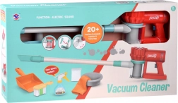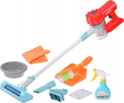 Acest set de curățenie pentru copii este realizat din plastic rezistent, în culori vesele, fiind ideal pentru jocul de-a casa sau hotelul. Aspiratorul funcționează cu 3× baterii AA (neincluse) și, la apăsarea butonului, redă un sunet realist, iar în rezervorul transparent pune în mișcare biluțe albe – copiii au astfel senzația unui aspirat adevărat.