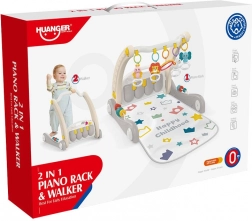 Umblătoarea Huanger oferă o gamă largă de opțiuni de joc pentru copilul dumneavoastră. Poate sta întins pe covorașul cu arcadă și zornăitoare, să exerseze pe burtică cu jucării la îndemână, sau să stea și să se joace cu zornăitoare și oglindă. Panoul muzical al pianului, care poate fi plasat lângă pătuț, funcționează ca un element liniștitor cu reglarea volumului în două trepte. Umblătoarea oferă suport stabil pentru un joc sigur și distractiv.