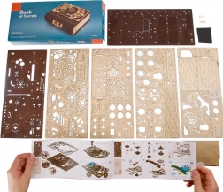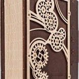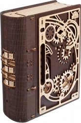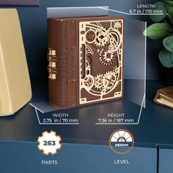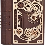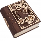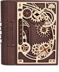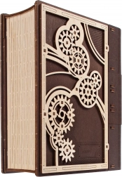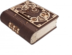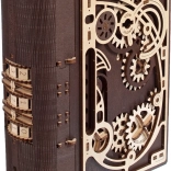 Cartea secretelor UGEARS îmbină inteligent decorul de design cu o ascunzătoare practică. Datorită mecanismului sofisticat cu roți dințate și cadran pe cotor, se deschide cu un cod din trei cifre, sau printr-o procedură specială chiar și fără cunoașterea combinației. Piesele decupate cu laser, în combinație de lemn deschis și închis la culoare, conferă modelului un pronunțat caracter steampunk.
