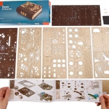 Piesele decupate cu laser din lemn sustenabil se îmbină perfect. Asamblarea este curată, intuitivă și ghidată de instrucțiuni ilustrate detaliate.
