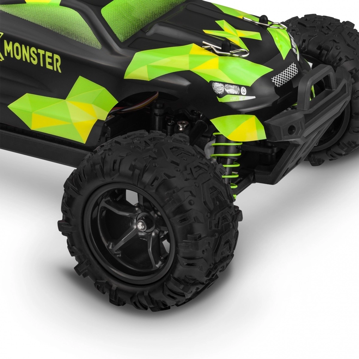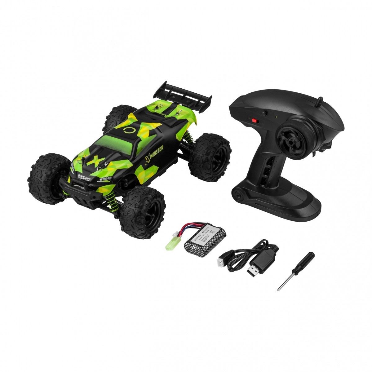 Suspensia independentă pe arcuri și pneurile speciale de tip tractor permit X Monster 3.0 să depășească cu ușurință obstacolele pe diferite tipuri de teren. Amortizarea asigură o stabilitate suplimentară pe teren denivelat, făcând o adevărată provocare să scoți această mașină de pe pistă!
