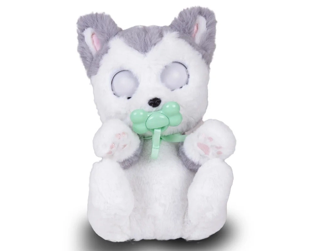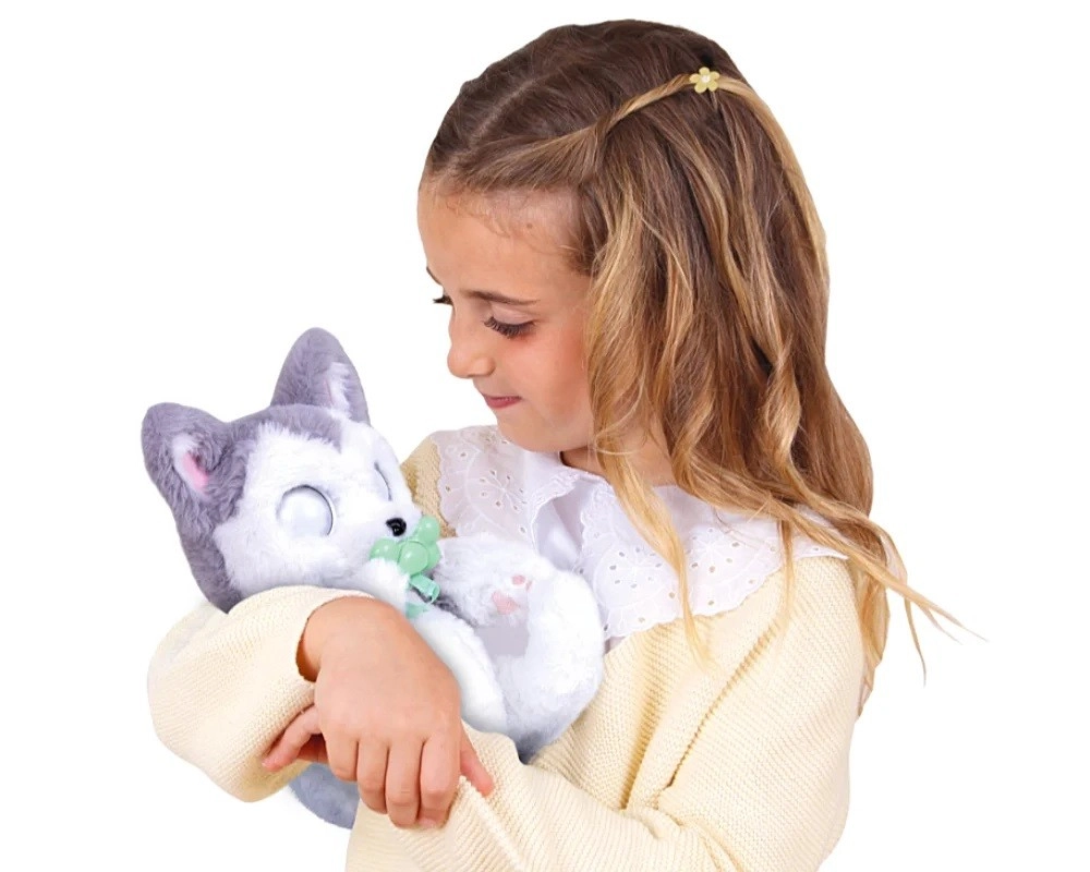 Cufundați-vă în lumea jocului interactiv cu acest adorabil căţeluş de pluș Husky din colecția Psytulaski. Căţeluşul reacționează la atingere și mișcare, oferind o experiență autentică. Când îi scoți suzeta din gură, husky-ul își deschide ochii și începe să latre. Suzeta nu servește doar la joc, ci și pentru a adormi cățelul, învățându-i pe copii să aibă grijă de animalele lor de companie și să își dezvolte responsabilitatea.