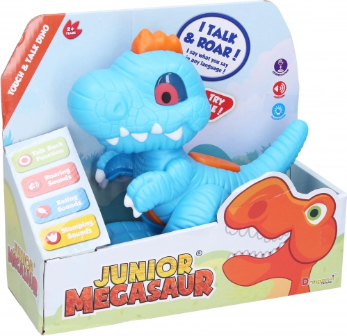 Bucurați-vă de ore de distracție cu dinozaurul vorbitor! Acest dinozaur interactiv scoate un adevărat răget de dinozaur, sunete de mestecare și tropăit de dinozaur. Funcția principală este repetarea cuvintelor dumneavoastră, ceea ce ajută la dezvoltarea abilităților de comunicare ale copiilor.