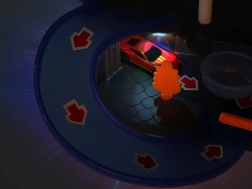 Liftul deplasează lin mașinuțele la etajul superior pentru spălare și înapoi pentru uscare. Concepția pe două niveluri aduce mai multă acțiune și dezvoltă motricitatea fină.
