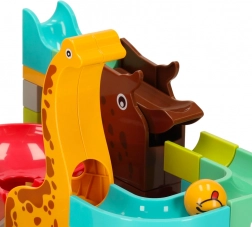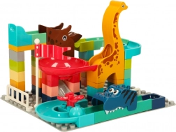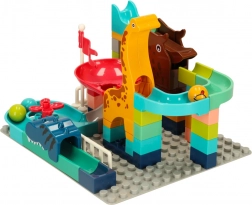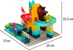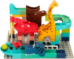Construiți împreună cu copiii propria pistă cu bile și urmăriți cum se avântă bilele pe rampe, tobogane și spirale. Animalele nu sunt doar ornament – sunt parte a traseului, astfel încât jocul devine și mai distractiv și captivant. Setul este excelent pentru dezvoltarea gândirii logice și bucuria construcției finalizate.