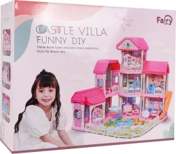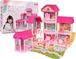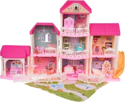 Descoperiți frumoasa și mare căsuță roz, ideală pentru copii de la trei ani. Această căsuță de poveste este compusă din 4 module separate, care pot fi combinate liber. Căsuța oferă un living complet echipat, baie, dormitor, bucătărie și dressing. Nu lipsesc nici camera copilului și zona exterioară de relaxare.