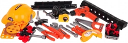 - Setul cuprinde chei, clește, ciocan, șurubelnițe și alte unelte