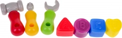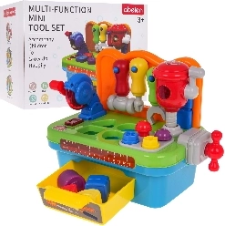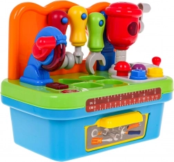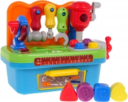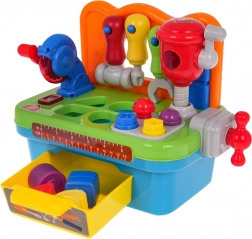 Acest atelier interactiv multifuncțional este ideal pentru micii meșteri. Promovează dezvoltarea abilităților motrice și încurajează jocul activ. Atelierul conține diverse unelte adaptate pentru mâini mici de copii, cum ar fi șurubelniță, cheie, ciocan care pot fi agățate pe etajeră. Pe blatul de lucru găsești fierăstrăul circular cu efecte sonore și luminoase realistice, precum și un ciocan vibrativ mobil.