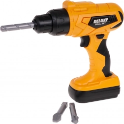 Bormașina pentru copii pe 2× AA (1,5 V, nu sunt în pachet) chiar strânge și desface șuruburi, are biți interschimbabili și „acumulator” detașabil. Efectele sonore intensifică experiența de joc.