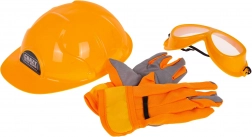 Casca din plastic, ochelarii de protecție și mănușile încurajează obiceiuri sigure în jocul de șantier și le oferă micilor meșteri un aspect profesionist, plin de încredere.