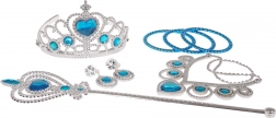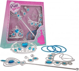 Acest set bogat echipat transformă orice joacă într‑o poveste fermecată. „Diamantele” din plastic lucios și imitațiile de pietre prețioase în finisaj argintiu‑albastru adaugă farmec oricărei ținute de prințesă. Accesoriile sunt concepute cu accent pe finisaje detaliate și purtare confortabilă.