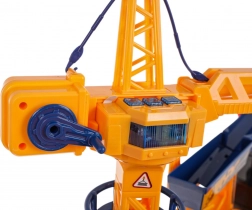 - Echipare bogată cu elemente mobile: braț de macara rotativ manual, manivelă albastră pentru deplasarea cârligului la stânga și la dreapta