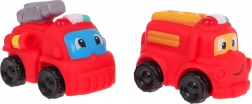 Acest set jucăuș va încânta orice mic fan al salvatorilor. Două mașinuțe de pompieri adorabile cu roți care se rotesc liber și două figurine colorate de pompieri susțin jocul creativ, dezvoltarea motricității fine și a abilităților sociale. Datorită dimensiunilor compacte, se potrivesc perfect în mâinile copiilor.