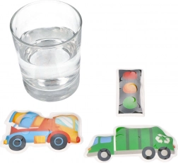 Transformă fiecare băiță într-o aventură cu autocolantele de baie cu motive de camioane, care după umezire își schimbă culoarea instantaneu. Copiii vor iubi să urmărească cum imaginile prind viață, exersând în același timp motricitatea fină și descoperind lumea mijloacelor de transport.