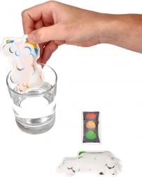 Autocolantele își schimbă culoarea la contactul cu apa – copiii sunt încântați de efectul vizual imediat și revin cu plăcere la ele în timpul băiței.