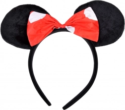 Bentița moale, cu urechiușe pufoase și fundă roșie, completează costumul și stă bine fixată pe cap.