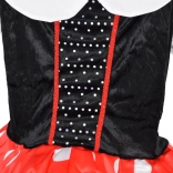 Acest costum fermecător de șoricică aduce împreună clasicul roșu cu buline deschise la culoare și eleganța corsajului negru. Detaliile lucioase din partea de sus și mânecuțele bufante oferă rochiței o notă festivă, în timp ce fusta căptușită își păstrează frumos forma pentru un efect „wow” la orice carnaval.