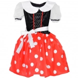 - Fustă roșie cu buline albe, corsaj negru, guler alb, mânecuțe scurte bufante