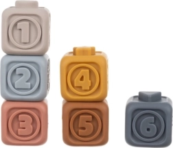 Cuburile sunt fabricate din PVC moale, care este sigur și nu conține substanțe dăunătoare. Sunt ideale ca jucărie și ca inel de dentiție.