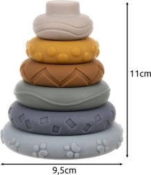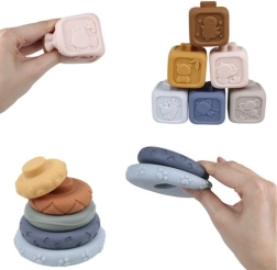 Sunt disponibile 6 cuburi și cercuri moi, care emit sunete delicate și au texturi variate, stimulând dezvoltarea simțurilor și abilităților motorii.