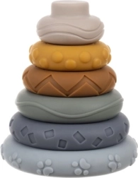 Setul include diverse cercuri și cuburi pentru construcție și aranjare, sprijinind gândirea creativă și logică a copiilor.