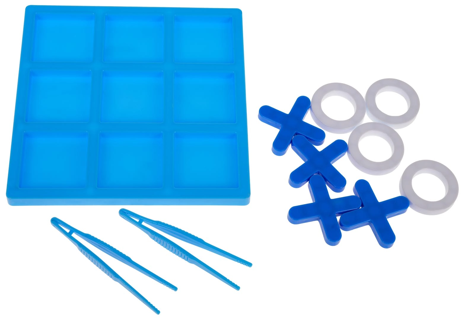 Această versiune mini a clasicului X și 0 oferă distracție simplă și isteață pentru 2–4 jucători. Tabla cu 9 câmpuri și setul de cercuri și cruci invită la dueluri rapide, unde câștigă cel care formează primul o linie dreaptă – orizontal, vertical sau în diagonală. Sunt incluse două pensete, care fac jocul mai atractiv și exersează motricitatea fină.